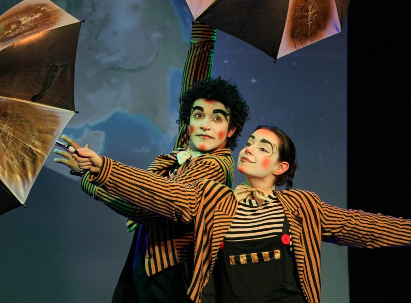 PRÊMIO APCA de melhor espetáculo de Animação, dois clowns, para divertir a plateia, tentam mostrar-se hábeis dançarinos, atiradores de facas e equilibristas de copos, mas nada funciona direito e eles estão condenados a uma série divertidíssima de fracassos. A dupla dá vida aos bonecos e mostra um grande domínio de um sem-número de técnicas de manipulação de formas animadas; da mesma forma, são excelentes nas relações que estabelecem com a plateia.